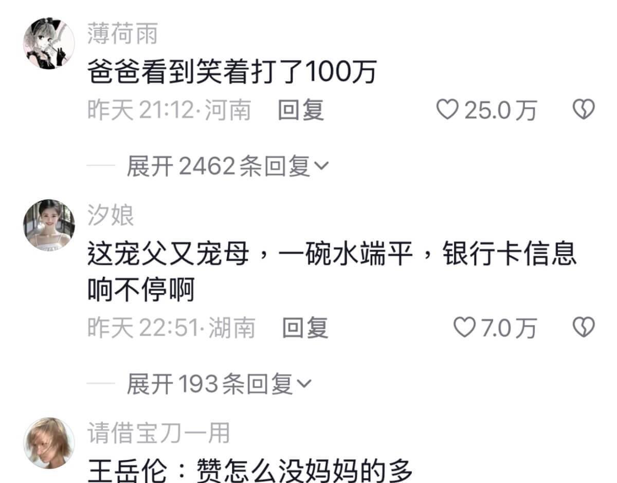 这则视频一公开,不少网友都调侃,表示妈妈被哄得很开心,银行又到账了~